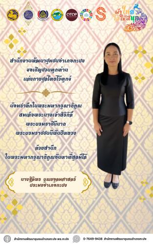 สำนักงานพัฒนาชุมชนอำเภอกะปง ขอเชิญชวนทุกท่านแต่งกายชุดไทยไว้ทุกข์ น้อมรำลึกในพระมหากรุณาธิคุณสมเด็จพระนางเจ้าสิริกิติ์พระบรมราชินีนาถพระบรมราชชนนีพันปีหลวง ด้วยสำนึกในพระมหากรุณาธิคุณอันหาที่สุดมิได้